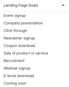When you browse through landing page templates in the Landingi platform, you will be asked about your landing page goals and presented with themes matching your needs. As you can see, a lot depends on the purpose (and, consequently, a call-to-action) of your landing page.