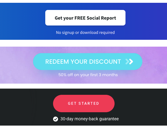 As you can see, the buttons presented above are simple and precise. Using verbs (like “get” and “redeem”) is a good way to tell the viewers exactly what they should do. Below each button, you can see an addition encouraging the visitors to click on it.