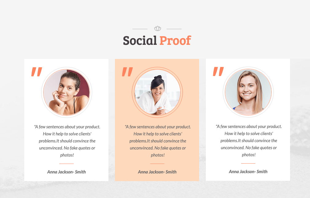 This is the right time to present them with all the crucial points about your offer, be it an event, a product, a course or a webinar invitation. You’ll need testimonials, forms and visuals to keep the visitors’ interest growing. A good idea may be to prepare the copy and images beforehand and then simply add them to your project. Let’s now focus on each of them and elaborate on why they are important and what landing page optimization best practices they come by.