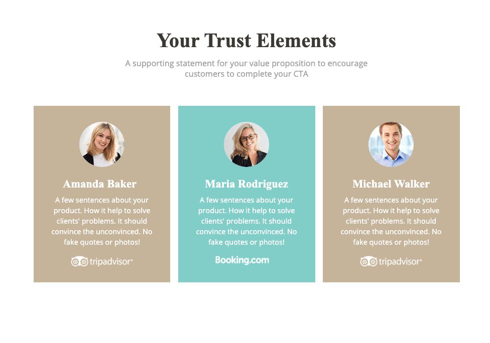 Your landing page should be directed to just one persona, so choose testimonials coming from clients with similar problems to the ones your personas might be facing. It may cause the potential customers to think of you as a possible solution to their own challenges.