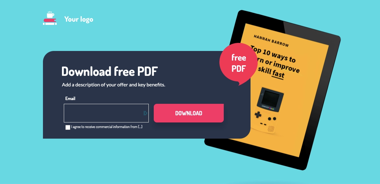 Build a landing page just like the one above with this Landingi template: E-book Download.