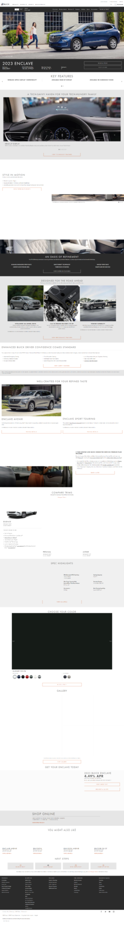Buick makes full use of the background to show off the Enclave model. Visitors can uncover more details about the model or other trim levels by scrolling further down the page or by clicking on one of the navigation links on the top-right portion of the screen.