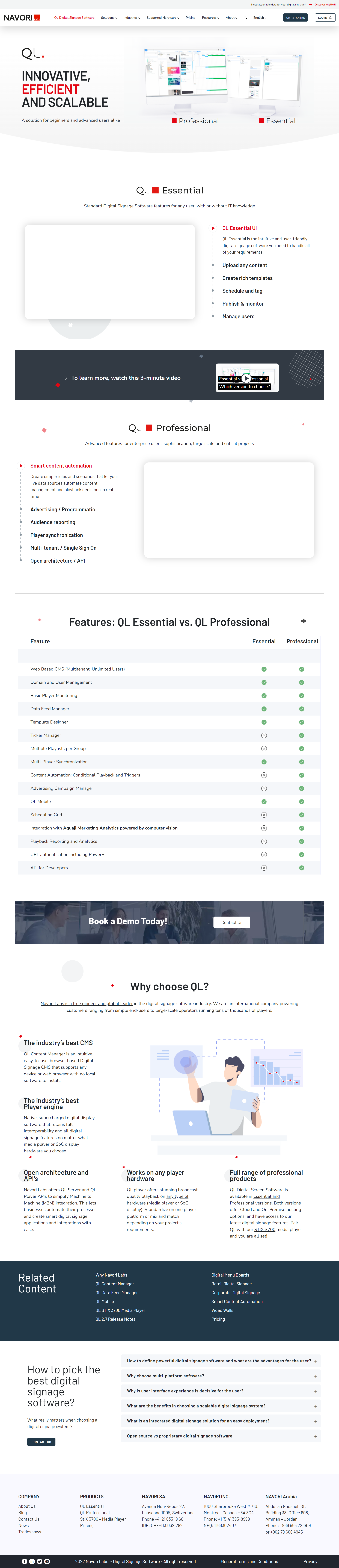 Navori offers a detailed description of its product as users scroll further down the page. Once visitors are filled-in, the landing page concludes with a FAQ section to eliminate any potential uncertainties. Navori also aims to close deals faster by showing its pricing plans.