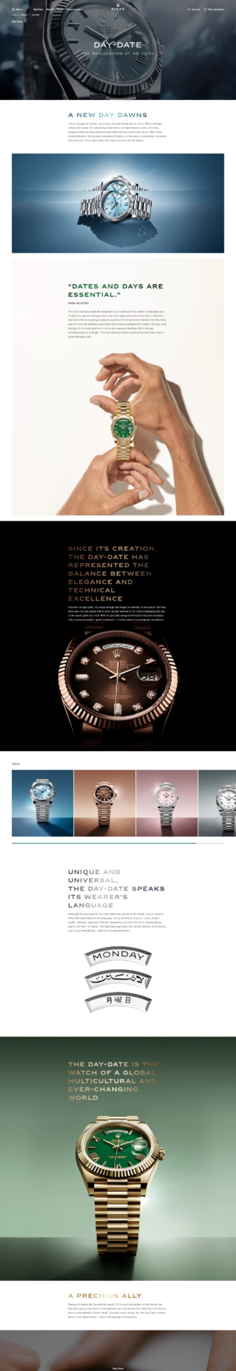 Rolex uses a video background to draw full attention to its product and present it from multiple angles.