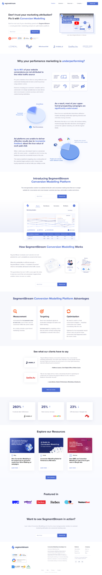 Segmentstream wrote a compelling headline and a brief description of what the product does. This sparks the visitor’s curiosity and persuades them into requesting a trial by submitting their email address.