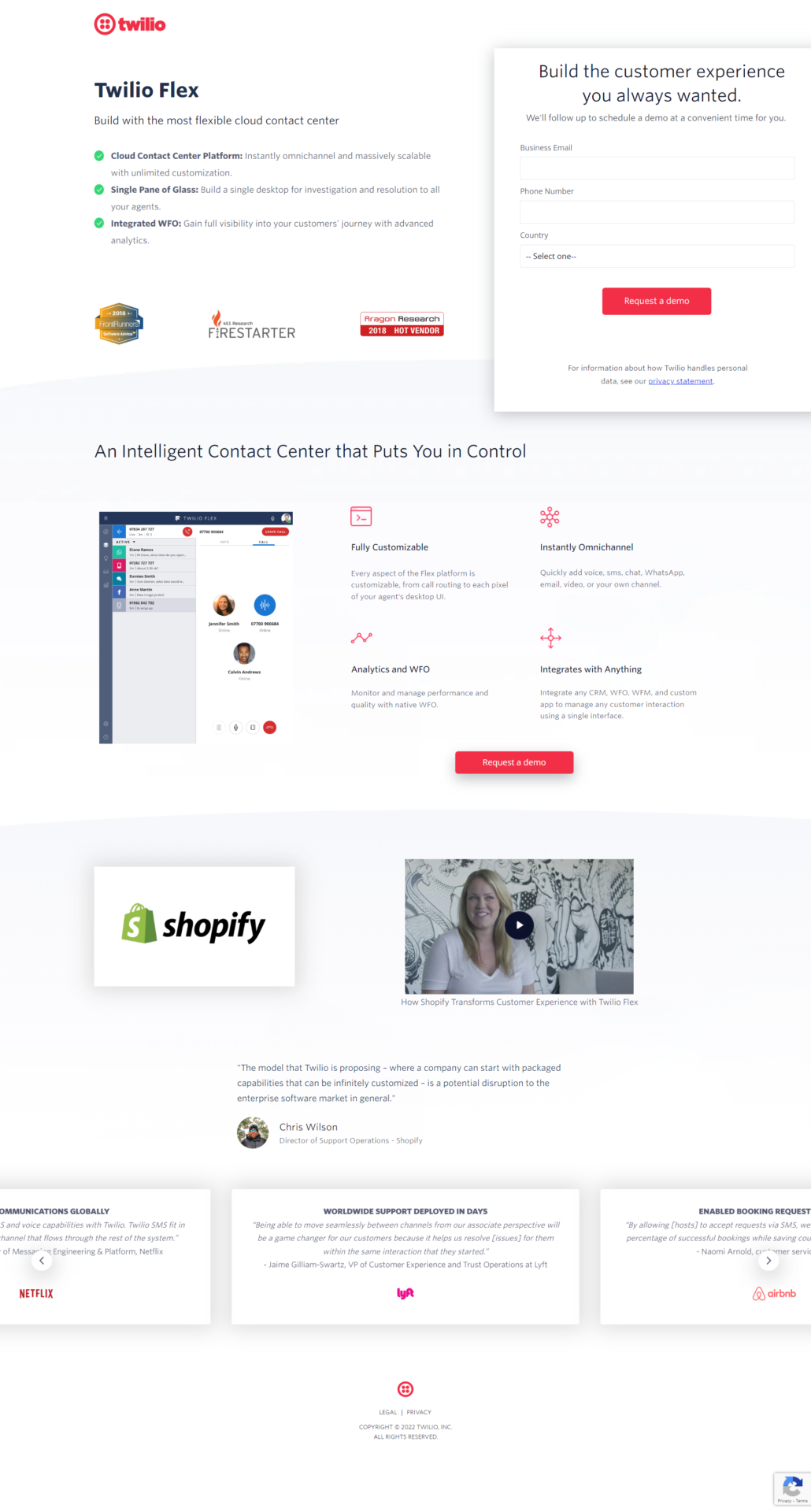 Note how Twilio highlights the platform’s key features to persuade users in submitting their contact information.