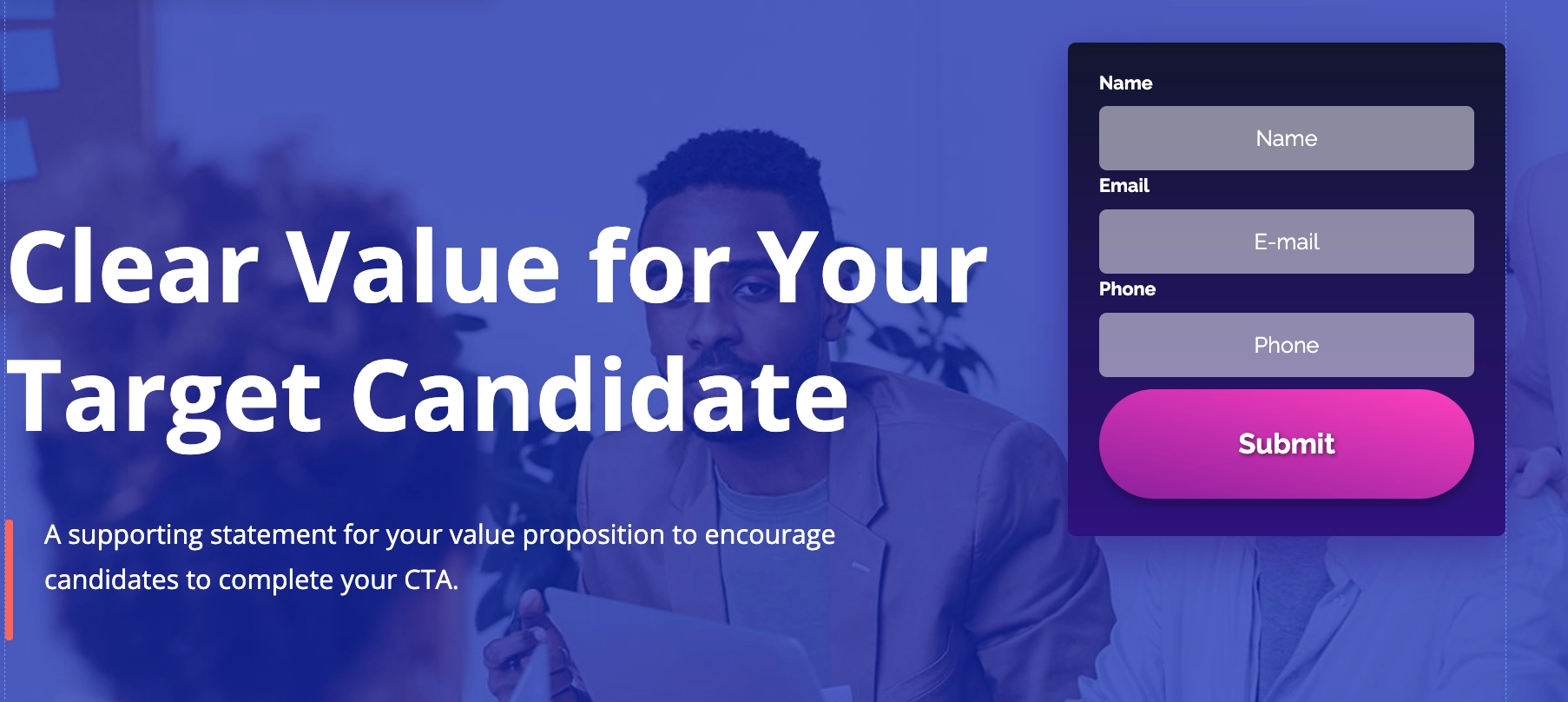 A recruitment landing page is a special kind of landing page. Nevertheless, it should have all the landing page essentials, such as: