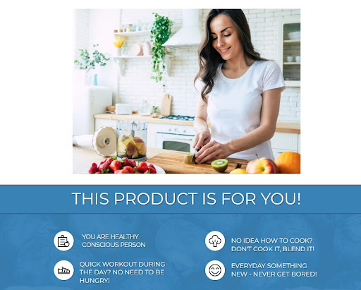 It simply makes sense to show people who are fit, healthy, and using our product. The content below refers to the needs of this group and why they would want to buy and use it.