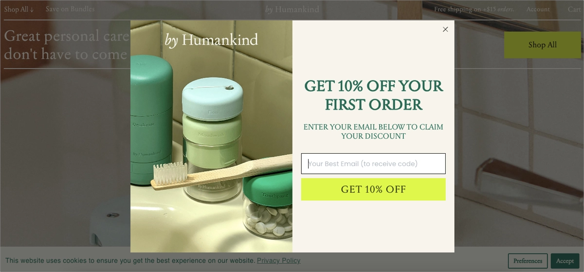 Das „By Humankind“-Schönheitsprodukt landing page zeigt sein Engagement für die Reduzierung von Einweg-Plastikabfällen durch eine Reihe von Körperpflegeprodukten. Mit wiederbefüllbaren Behältern und natürlichen Inhaltsstoffen setzt es auf nachhaltige Praktiken, die sich positiv auf die Umwelt auswirken sollen. Die Website landing page ist benutzerfreundlich, bietet eine einfache Navigation und hebt die Produktpalette hervor. Dieser Ansatz kommt der wachsenden Nachfrage der Verbraucher nach umweltfreundlichen Produkten entgegen.