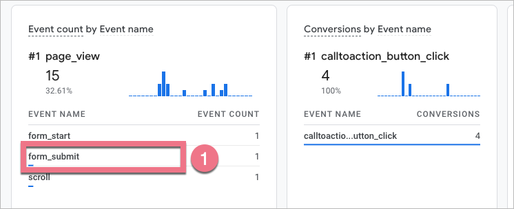 - In Event count, click form_submit.