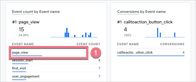 - In Event count, click page_view.