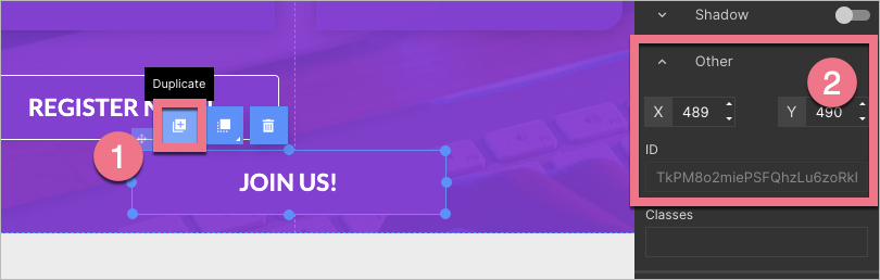 3. Duplicate or create a new button (1) that you want to track (you can edit it freely). Delete the old button.