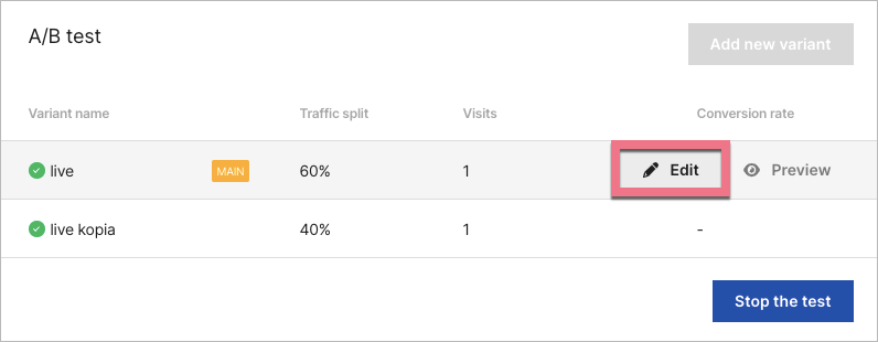 3. Go to the editor of the landing page variant.