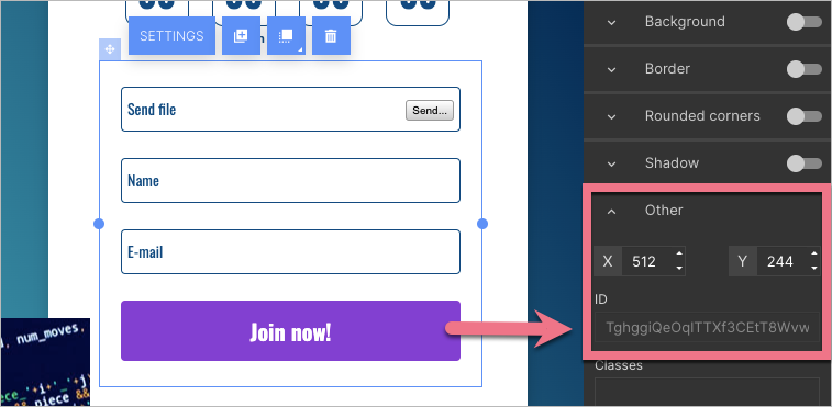 3. Click your form. In the right-side menu, unfold the Other tab. Copy and save the ID number.