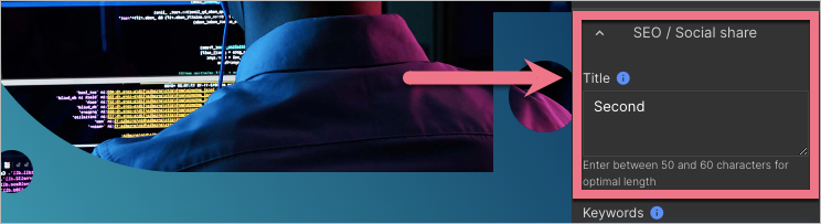2. In Page settings, unfold the SEO / Social share tab. In the Title field, enter a unique title for this landing page. After the changes, publish the landing page.