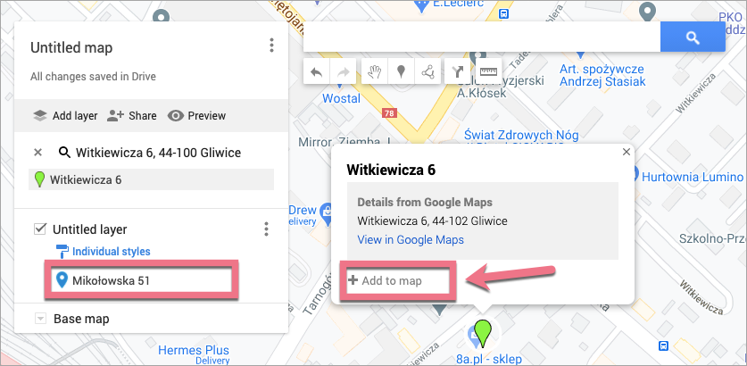3. Click Add to map on a pop-up window. Find other locations the same way, if you need (they will appear in the left panel).