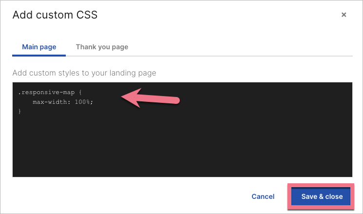 Add a map to the address indicated on your landing page so your users know exactly where to find you. With the HTML widget, you can add a Google map to a landing page with a single location or with a few locations.