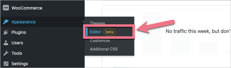 4a. Go to your WordPress dashboard. In the menu on the left, navigate to the Appearance tab and click Editor.