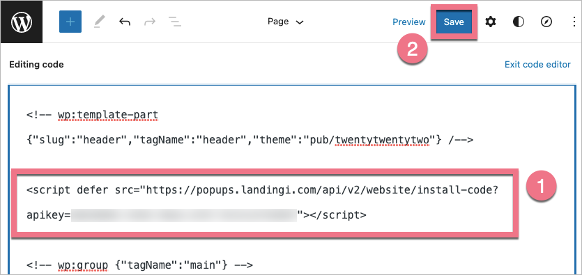 If you want your pop-up to be added to your own site (outside Landingi) powered by WordPress, take the steps indicated below.