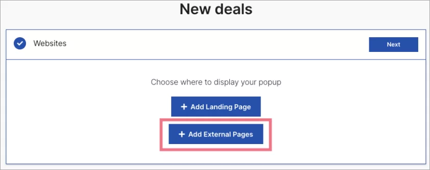 1. When your pop-up is ready, click Next/Publish in the editor. You can also access the settings from the pop-up list by clicking on Display Rules.