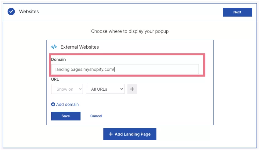 3. Type the URL of your Shopify store. Find out more about pop-up publishing options here.