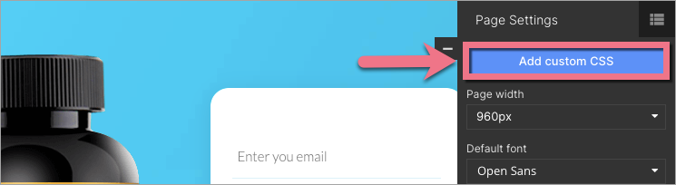 2. In the editor, go to the Page Settings (you will find it in the upper right corner of the toolbar) and click on Add custom CSS.