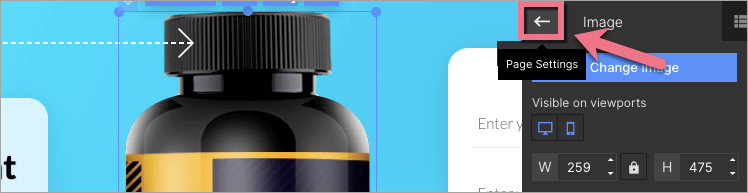When editing, you can go back to Page Settings by clicking on the arrow: