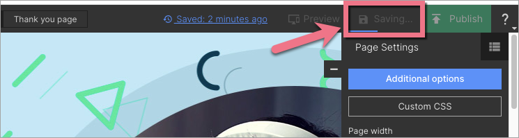 When working in the editor of the landing page, pop-up, or lightbox, changes that you made are saved automatically.
