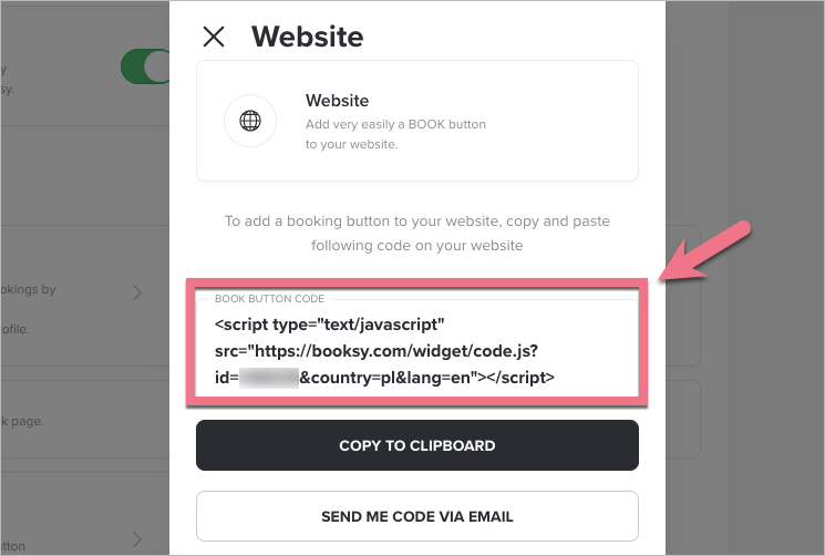 4. Paste the code from Booksy in the Add HTML code field. Then Save & close.