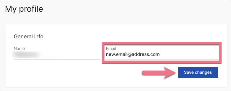 2. In the General Info section, type a new email address, then click Save changes. For security, you will be asked to enter your account password.