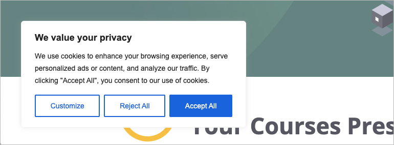 3b. If you add a new site, you will be redirected to customize your cookie banner. When you’re ready, click Next Step.