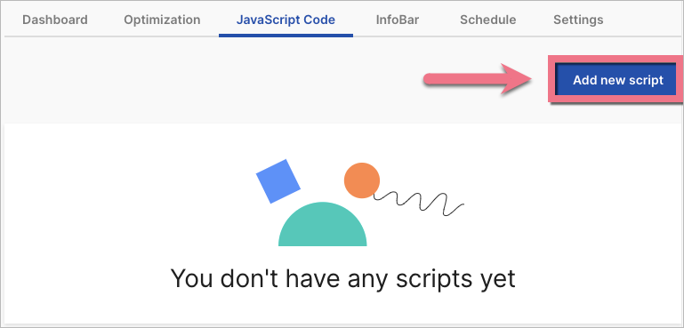 4. Name (1) the script and choose the Body bottom (2) position on the Main page (3). Paste the code (4) in the content field. Save by clicking Add script.