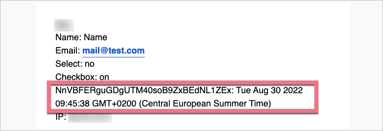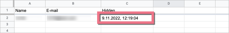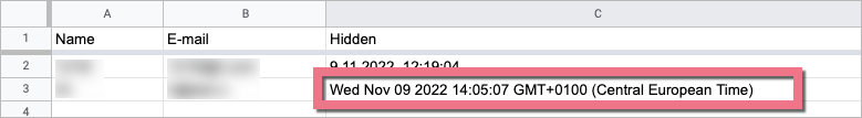 If you want to receive, in lead details (sent through the email integration or any form integration), the date and time when the lead has filled out the form on your landing page, add a hidden field to the form. Then choose one of the two JavaScript codes, depending on the format in which you want to receive the information: detailed, i.e. Mon Jul 01 2021 12:00:00 GMT+0200 (Central European Summer Time), or date and time only, i.e. 01.01.2021, 12:00:00.