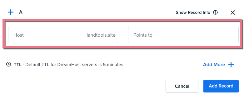 1. Add an A record for the subdomain you want to add to Landingi. If you already have such a record, edit it.