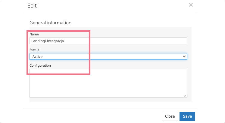 4. Name your integration and make sure, that the status is Active, then save the changes.