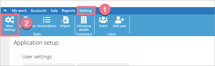 1. Log in to your Egito account and go to Settings (1) > Main Settings (2).