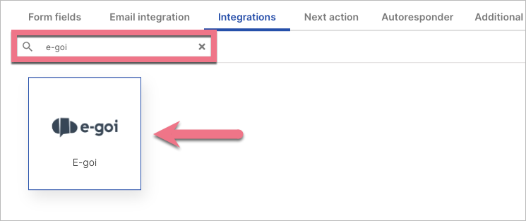 3. In the Integrations tab, choose E-goi. You can use the search bar to look for the integration. Type the name and press enter.