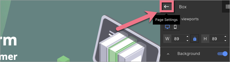 When editing, you can go back to Page Settings by clicking on the arrow:
