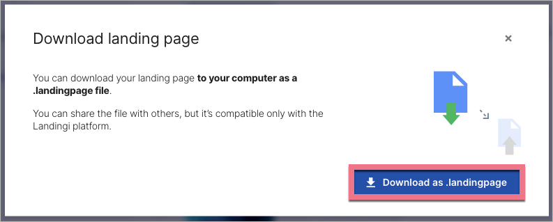 2. In the pop-up window, click on the Download as .landingpage button to confirm that you want to export the file.