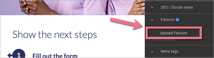 By default, a favicon of your landing page in Landingi is the Landingi logo. You can change it and add your individual favicon for each landing page.