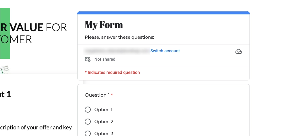 In Google Forms, you can create and share forms and surveys, and then analyze the responses in real-time. This guide will walk you through embedding such a form or survey on your landing page in Landingi.