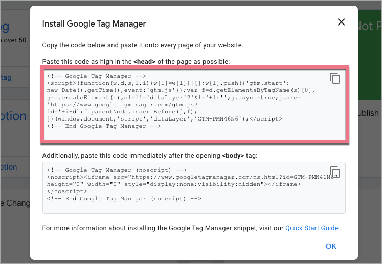6. Copy the second code from Google Tag Manager.