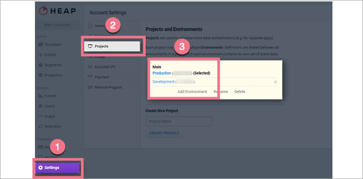 2. Go to Settings (1) > Projects (2) and copy the app ID (3).