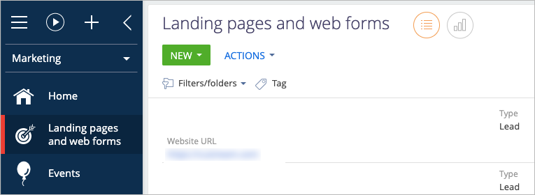 Do not create pages in Creatio in the Landing pages and web forms tab – it is not necessary anymore.