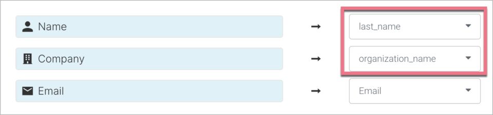 6. This integration requires two fields: last_name and organization_name. You can always add and map any other additional fields.