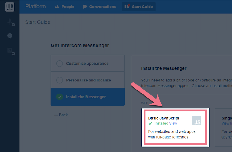 2. Go to Platform > Start Guide, and click on Install the Messenger.