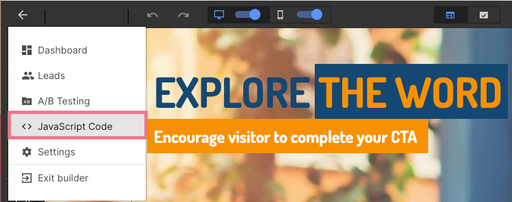 You can also access the JavaScript Code section directly from the editor of your landing page.