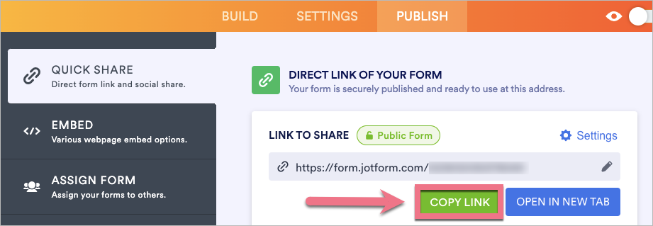 3. When ready, go to the Publish tab and copy your code from the Quick Share tab.
