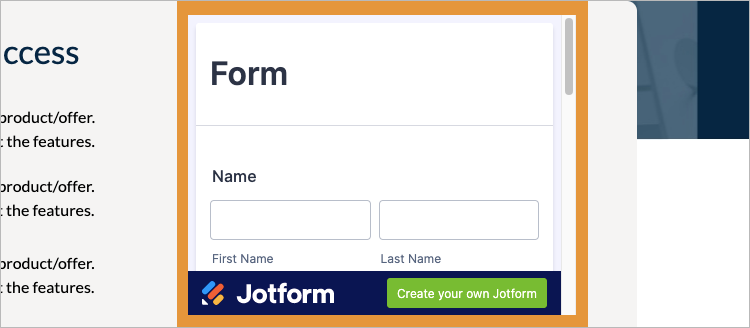 Jotform is an online builder that allows you to create custom forms quickly. It also gives you multiple payment options you can add to your form. This guide will walk you through embedding a Jotform form on a landing page or pop-up created in Landingi.
