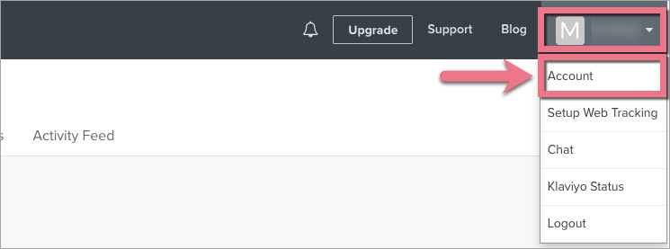 When connecting Klaviyo and Landingi, you will need Klaviyo API Keys. To find them, click on your profile name and choose the Account tab.